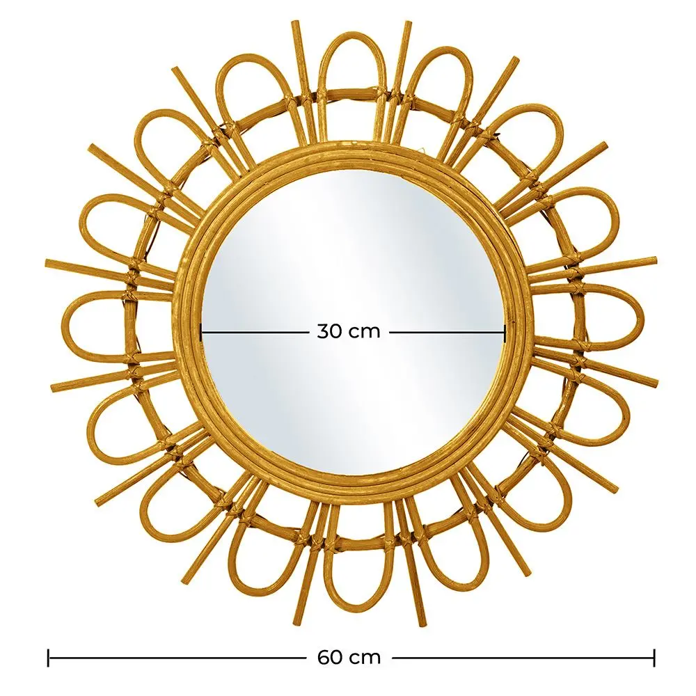 Non riuscirai più a fare a meno di questo specchio a parete in rattan naturale. L'intreccio è stato fatto a mano e ha un design semplice e rustico, che porterà un tocco di naturalezza e vivacità in qualunque stanza lo metterai. Abbinalo a dei mobili in iuta o in legno grezzo. Siamo sicuri che lo adorerai.