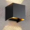 Ecco una bellissima lampada da parete dal design minimale e moderno, che decorerà con eleganza gli spazi esterni. L'applique, a forma di cubo nero, è aperta sui due lati. Emanado la luce sia dal lato infreriore che superiore, crea un effetto molto particolare. Resiste all'acqua e all'umidità.