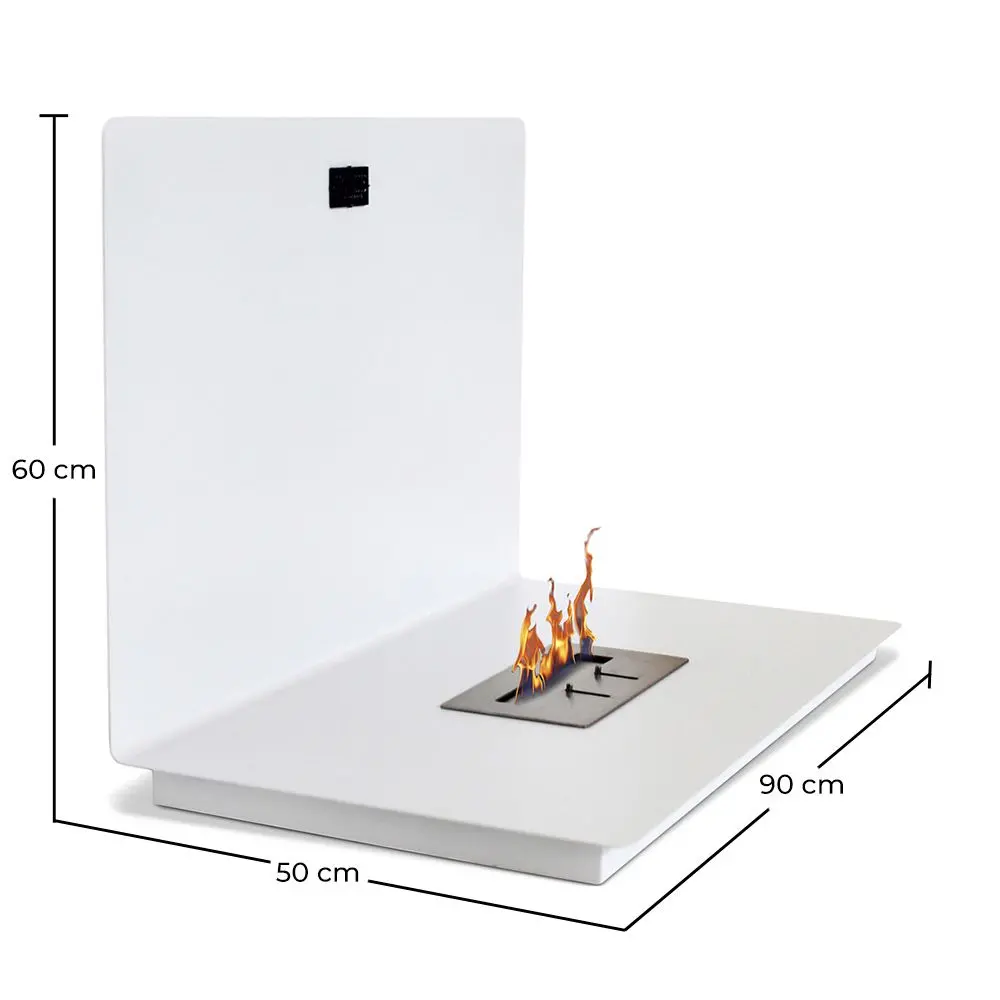 Istallare il caminetto è molto semplice e non ha bisogno di canna fumaria: basta con gli spazzacamini! Il caminetto è sempre in ordine e diventerà parte del tuo arredamento. Lo puoi mettere dove vuoi, ma è preferibile una stanza ben ventilata. Non aspettare oltre per sostituire il tuo vecchio camino! Inoltre, un caminetto a bioetanolo non produce nessun tipo di fumo, odori, cenere, polvere, scintille o fuliggine. Dimentica gli scomodi e poco puliti ceppi: solo vapore acqueo e l'equivalente in anidride carbonica di 3 candele è il prodotto delle fiamme di questo caminetto a bioetanolo, fiamme che invece ti daranno tanta atmosfera accogliente. La combustione rilascia la stessa quantità di CO2 di un essere umano, quindi nessun rischio! La manutenzione è limitata a ricaricare il combustibile (bioetanolo in gel per i contenitori e liquido per il bruciatore a olio), un liquido 100 % naturale, distillato dallo zucchero delle piante. Il caminetto a bioetanolo è anche un'ottima fonte di calore che ti farà risparmiare. La sua capacità termica è uguale a quella prodotta da 2 o 3 stufe elettriche, dipende dal modello, e ilconsumo è basso: da 0.35 L a 0.50 L di bioetanolo all'ora. Per finire, tutti i nostri caminetti a bioetanolo sono a due lati (3mm 2mm) e sono saldati al 100% per evitare qualunque rischio. Tutti i materiali usati sono conformi alle norme di sicurezza e un sistema di montaggio è incluso per i caminetti a muro.