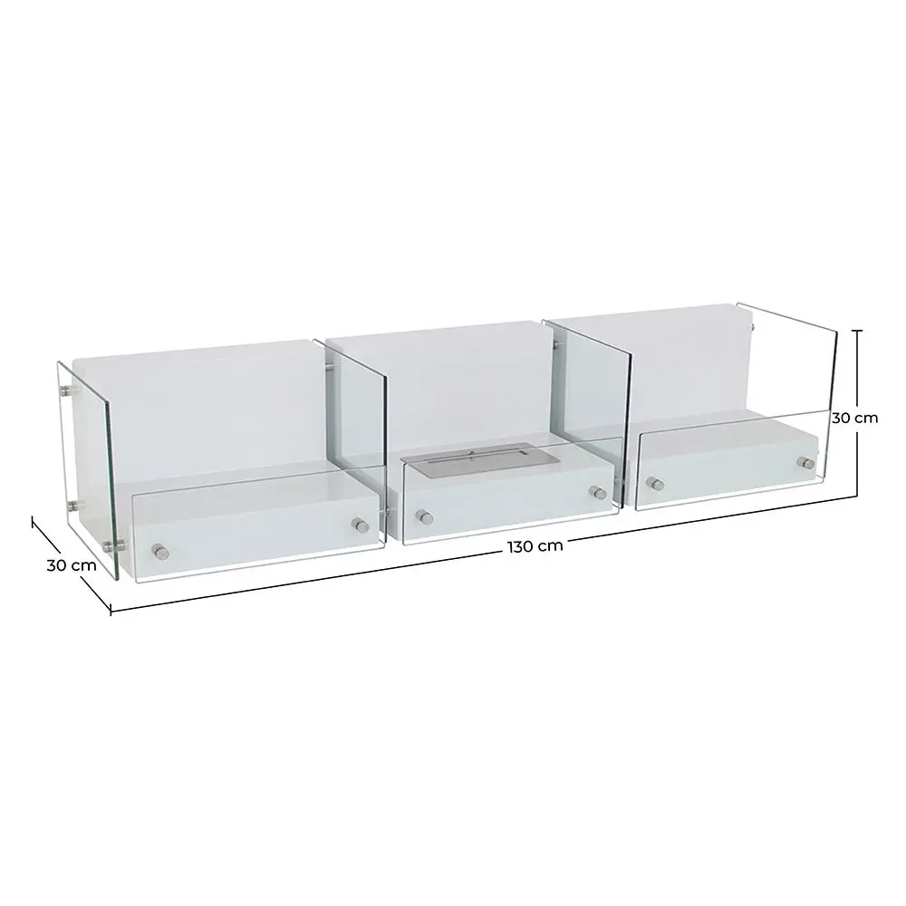 Informazioni: caminetto da parete. 7 pannelli di vetro di sicurezza, resistente alle alte temperature; 9 viti, 8 montanti.