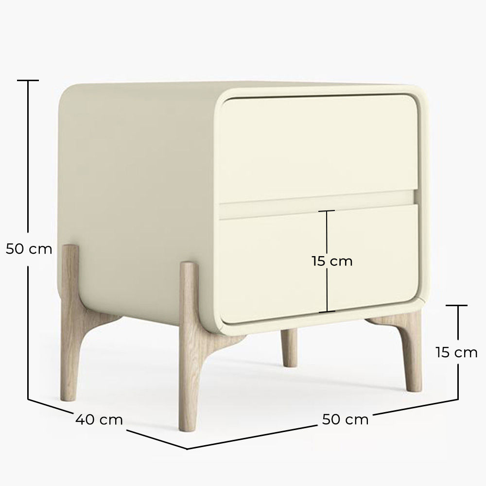 Porta stile e funzionalità alla tua camera da letto con questo comodino dal design moderno scandinavo. Realizzato con una struttura in legno e rivestito in finta pelle di alta qualità, offre una finitura morbida e contemporanea che si adatta a qualsiasi ambiente: camere da letto per adulti, adolescenti o bambini. I suoi due spaziosi cassetti facilitano l'organizzazione, mentre le sue gambe in legno massello di colore naturale forniscono stabilità e un tocco caldo e organico.