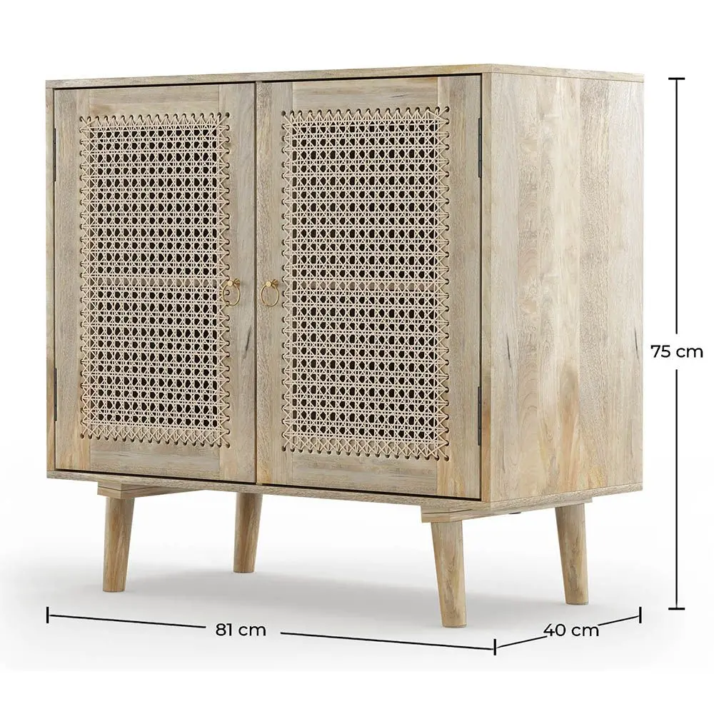 Cerchi del mobilio dall'aspetto rustico e retrò? Allora prova questa credenza in legno di mango. Ha due ante decorate con un intreccio in paglia di Vienna capace di creare ovunque un'atmosfera accogliente e rilassante, ed è dotata di quattro compartimenti interni per riporre al meglio i tuoi oggetti preferiti. Non vorrai più farne a meno!