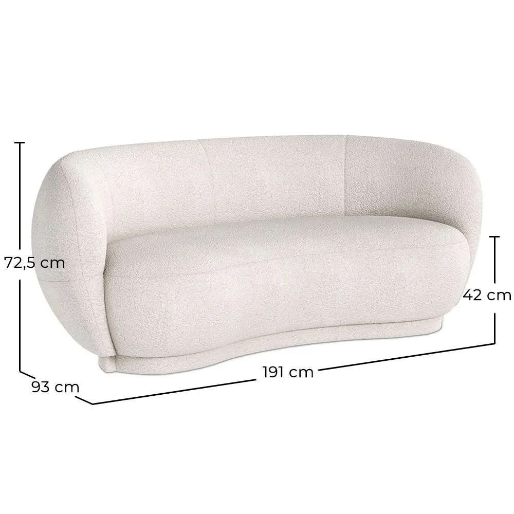 Il design minimal è ciò che rende speciale il divano curvo a 3 posti con rivestimento in bouclé in un affascinante colore bianco sporco. Poiché le gambe sono nascoste, il divano sembra fluttuare nell'aria! Renderà il soggiorno moderno, poiché il rivestimento in tessuto bouclé e i mobili dalle forme organiche sono due delle tendenze di decorazione più forti. Questo divano di design curvo è perfetto se desideri aggiungere un tocco elegante alla tua casa o a uno spazio commerciale come un hotel, un ristorante o una sala d'attesa...