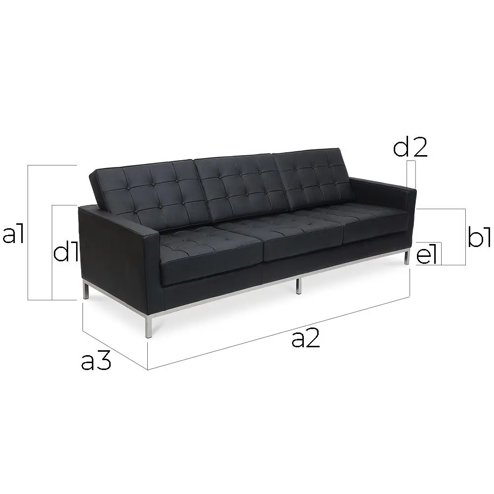 Progettato nel 1954, questo Sofà Kanel (3 posti) è il Sofà di design par excellence, disegnato su alcune caratteristiche dell'arredo inglese del XVIII secolo eppure rimanendo fortemente moderno grazie alle sue linee tese e minimaliste. Ha gambe in acciaio inossidabile sotto una struttura in legno. È rivestito in pelle e offre un comfort totale.