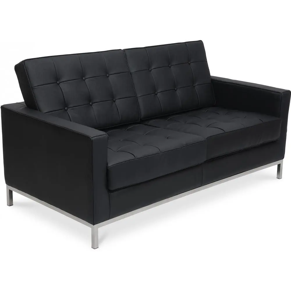 Progettato nel 1954, questo Sofà Kanel (2 posti) è il Sofà di design par excellence, disegnato su alcune caratteristiche dell'arredo inglese del XVIII secolo eppure rimanendo fortemente moderno grazie alle sue linee tese e minimaliste. Ha gambe in acciaio inossidabile sotto una struttura in legno. È rivestito in pelle e offre un comfort totale.
