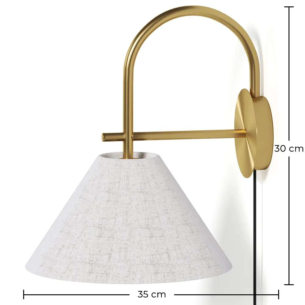 Questa elegante e funzionale lampada da parete è la soluzione perfetta per chi cerca illuminazione ausiliaria senza installazione elettrica. Realizzata in metallo con una finitura in oro invecchiato, aggiunge un tocco sofisticato e caldo a qualsiasi spazio. Il suo paralume in tessuto beige naturale filtra delicatamente la luce, creando un'atmosfera accogliente ideale per camere da letto, soggiorni o angoli lettura.