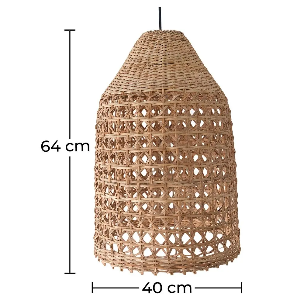 Questa lampadario in rattan in stile Boho, dal design a campana incanta, più che illuminare. La luce viene filtrata dagli spazi dell’intreccio, rendendo l’atmosfera soffusa, rilassante e romantica. Completa con stile ogni stanza e ambiente, anche esterno, che abbia un arredamento sobrio, rustico o esotico.