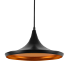 Il design del Lampadario Wide Shade si rifà alla forma dei contenitori per l'acqua che ancora oggi sono in uso in India. L'ottone battuto all'esterno crea una superficie nera in contrasto con l'interno caldo e dorato. Questo creativo design fa una luce diretta e darà un tocco artistico ad ogni ambiente alla moda. Il lampadario è disponibile anche con l'esterno bianco.