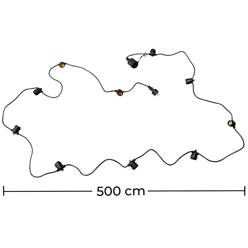 Se stai cercando di dare un tocco diverso al tuo arredamento di interno, scegli di decorare la tua casa con questa ghirlanda di lampadine. Si compone di un cavo di 5 metri e 10 attacchi E27 per lampadine. Puoi appenderlo come festone decorativo dal soffitto, sulla testiera di un letto, attorno ad una finestra... le possibilità sono infinite.
