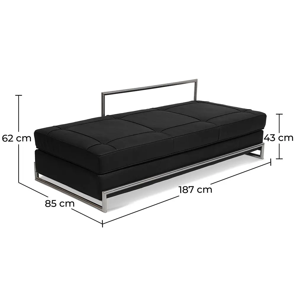 È un divano ampio molto bello e comodo, particolarmente adatto al relax. La seduta in morbida similpelle è posta su una solida struttura in acciaio cromato. Mettilo in ufficio o in salotto, e comincia subito a goderti il suo fascino e l'eleganza.