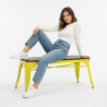 Questa panchina industriale in legno e ferro è ispirata allo stile Bistrot Metalix ed è adatta sia ad esterni che ad interni. Pensaci: puoi farci sedere i clienti fuori dal tuo bistrot, ma anche metterla vicino al tavolo del tuo salotto privato per ospitare parenti e amici. Ha un marcato design industriale e i colori scuri saltano subito all'occhio.