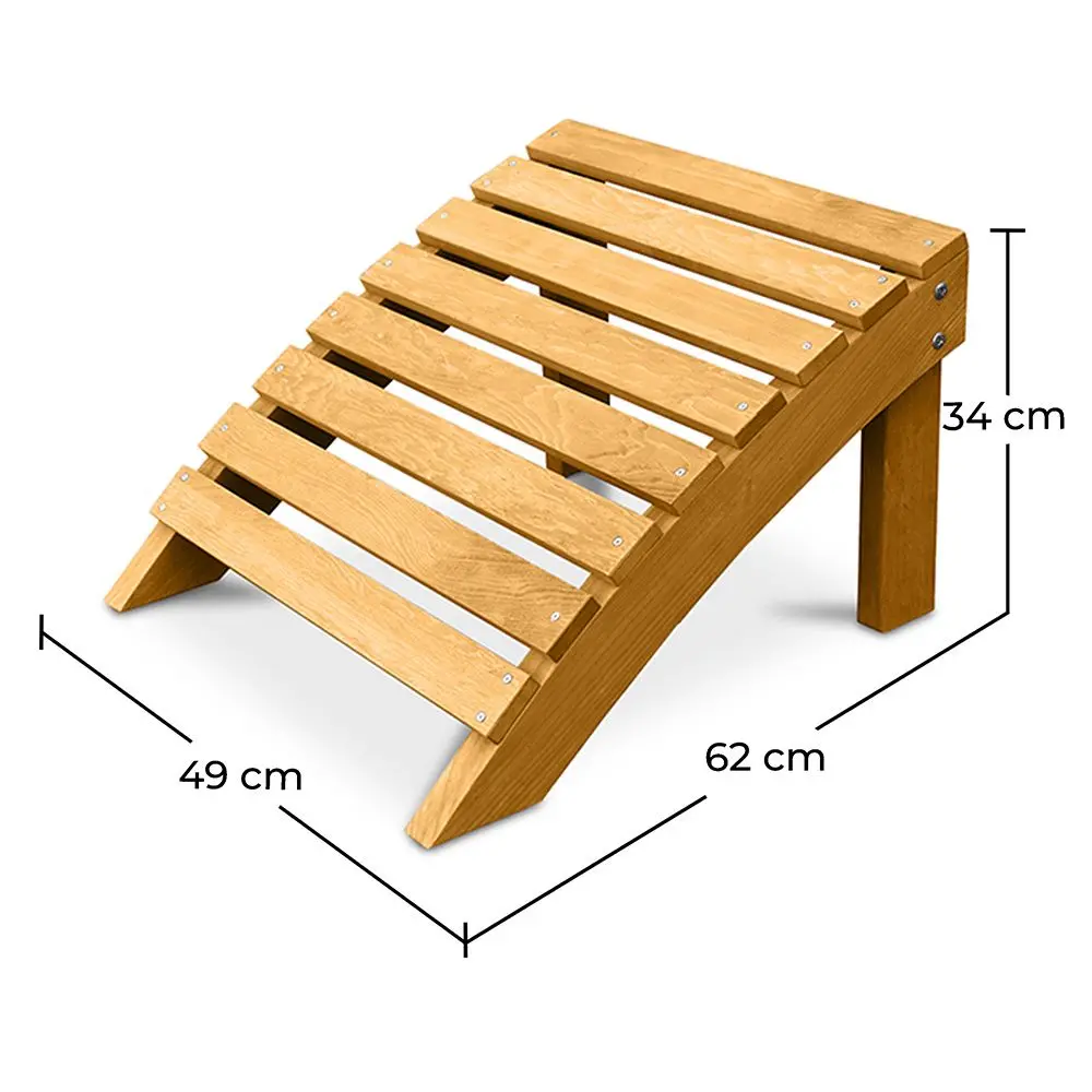 Questo poggiapiedi in legno hemlock sarà una pratica aggiunta al tuo set di mobili da esterno ed è progettato per essere quattro stagioni. Il suo design in legno è fatto per accompagnare una sedia da giardino ben posizionata ma può anche essere usato come versatile aggiunta in un hotel o ristorante. Comodità e relax non dovrebbero mancare mai e il poggiapiedi è progettato alla perfezione e la sua forma può accompagnare un'ampia gamma di tipologie di gambe. È solido ma si sposta con facilità. L'estetica della sedia da giardino è un mix di tradizione e modernità ma dà una sensazione di uniformità finale. Tutti gli elementi naturali e la semplicità delle sedie in legno in stile Adirondack si sposano alla perfezione con questo poggiapiedi.