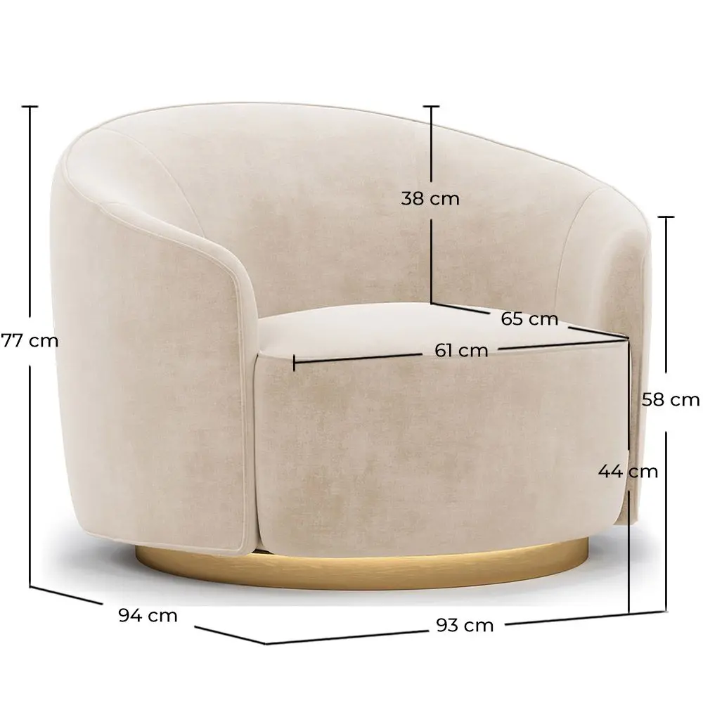 La poltrona Treya è un pezzo di design impressionante e confortevole, con la sua forma curva e l'alta qualità dell'imbottitura in velluto. Che si trovi in salotto, nella camera da letto, in un ristorante o in un hotel, questa poltrona di design porta classe ovunque venga posizionata. La texture morbida e setosa del velluto aggiunge un piacevole tocco sensoriale e un aspetto sontuoso che sicuramente catturerà l'attenzione di chiunque lo veda. La base della poltrona Treya è costruita con materiali durevoli e di alta qualità, realizzata in metallo con un'elegante finitura dorata, che completa il design moderno e offre stabilità e resistenza alla poltrona. Inoltre, la sua forma curva e compatta rende questa poltrona una scelta perfetta sia per ambienti spaziosi che per angoli più piccoli.