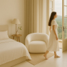 Scopri l’eleganza e il comfort di questa poltrona moderna in tessuto bouclé bianco crema, ideale per dare un tocco sofisticato al soggiorno, alla camera da letto o all’angolo lettura. Il suo design curvo e avvolgente offre un’esperienza di relax unica, mentre il rivestimento in bouclé dona texture, morbidezza e stile contemporaneo.