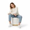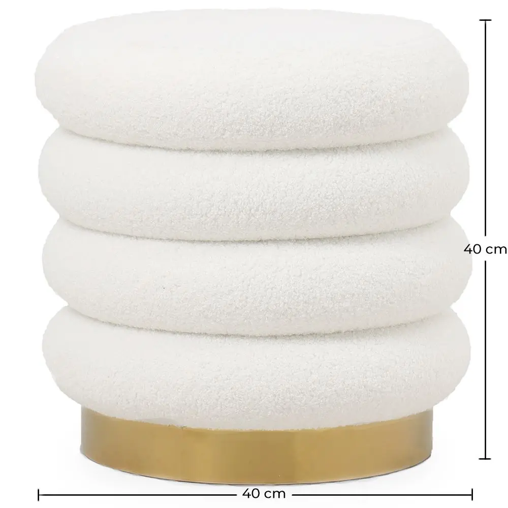 Goditi il massimo comfort e stile con il nostro pouf rotondo rivestito in tessuto bouclé che ricorda la lana di pecora. Con una struttura in legno e una base dorata, questo pouf combina eleganza e modernità in un design unico. La sua tappezzeria morbida e accogliente offre un'esperienza di seduta lussuosa, mentre il suo design rotondo offre un aspetto contemporaneo. Perfetto per aggiungere un tocco di sofisticazione a qualsiasi spazio, questo pouf è sinonimo di qualità superiore e stile raffinato.