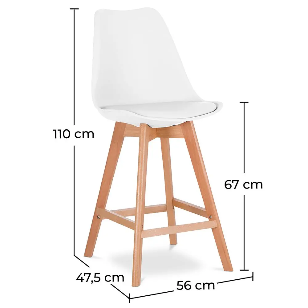 Questo sgabello da bar in stile scandinavo ha un cuscino fisso ed è fatto di PP. Le gambe in legno massiccio sono molto resistenti e stabili. Questo sgabello con schienale è perfetto per il bancone della cucina: non solo darà un tocco di design a casa tua, ma ti regala anche una seduta comoda per le tue belle cene.