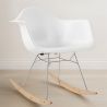 Sedia a dondolo contemporanea con seduta in polipropilene resistente, gambe in acciaio rinforzato e dettagli in legno massello di faggio. Perfetta per chi cerca un arredamento funzionale ed estetico per la propria casa o ufficio. Il suo design ergonomico la rende anche adatta come sedia per l’allattamento, offrendo relax e stile.