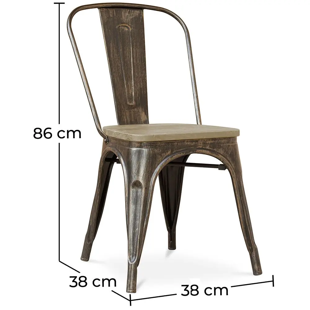 La sedia in stile Bistrot Metalix si fa forte di queste caratteristiche ma allo stesso tempo tiene a mente anche la necessità di essere leggera. Il che vuol dire che puoi spostarla senza problemi da un posto all'altro se decidi di usarla come sedia da ristorante o da bar. Sotto il sedile di legno c'è un supporto di metallo a forma di X che la rende anche più solida.