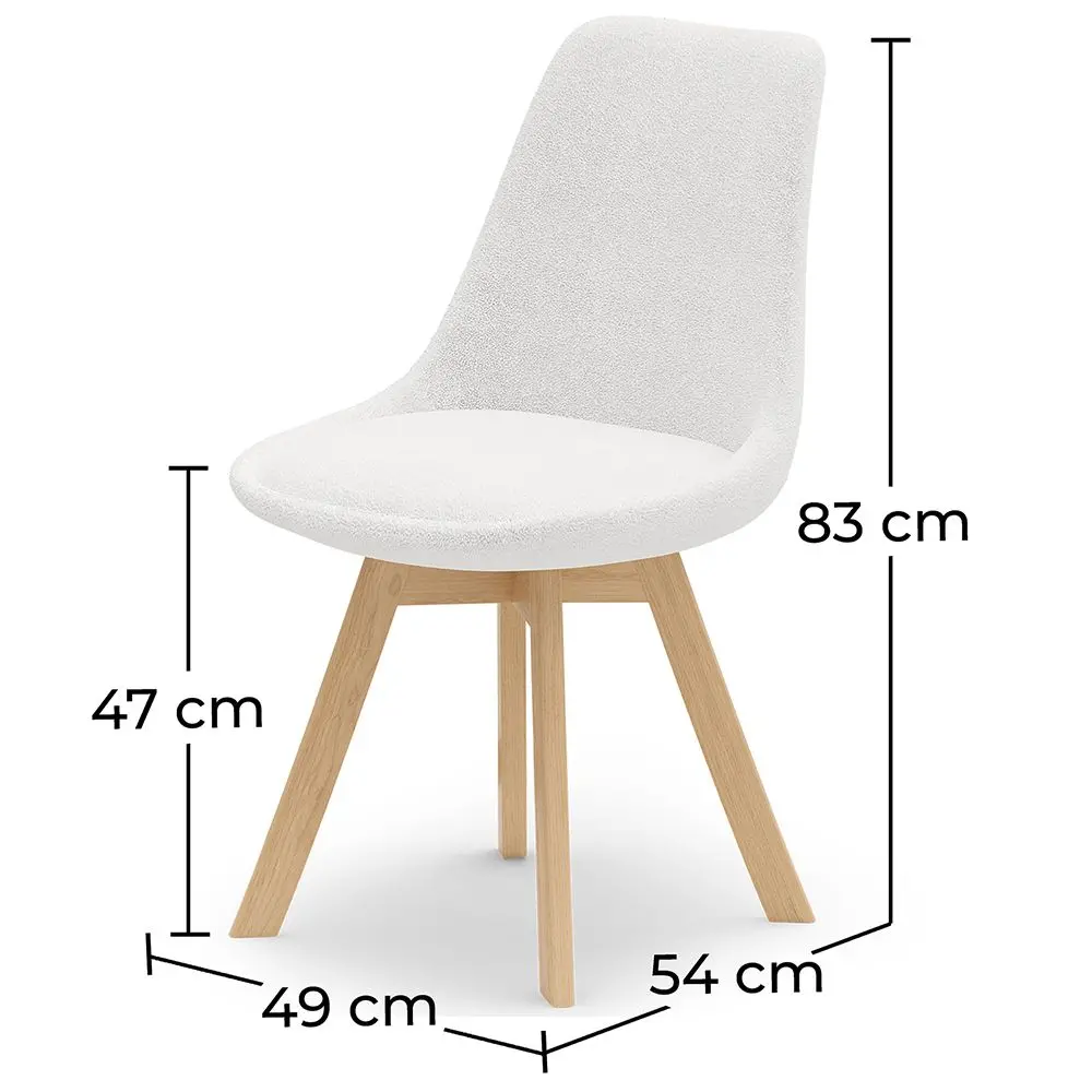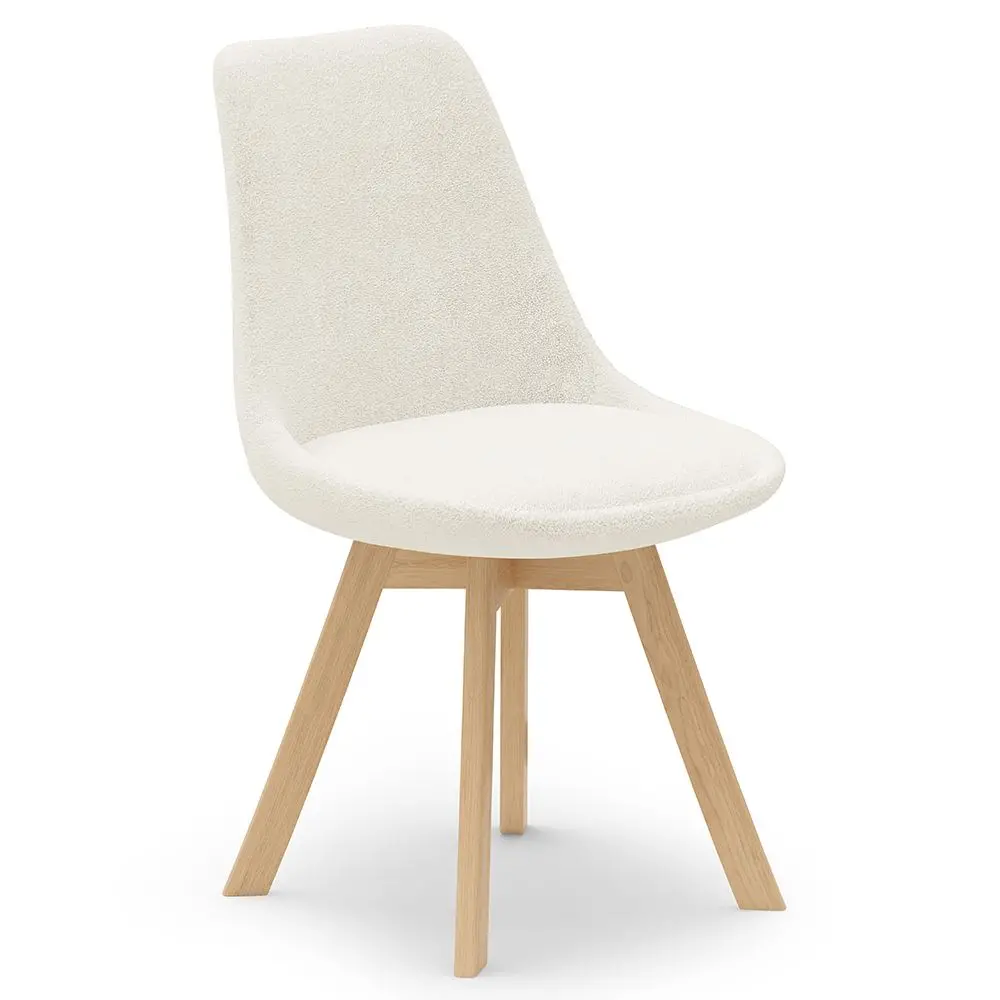 Con il suo design semplice e curato nei minimi dettagli, la nostra sedia da pranzo imbottita Tulipe è un complemento d'arredo davvero desiderabile. Caratterizzata da un sobrio stile scandinavo, va bene per la sala da pranzo e il soggiorno, ma anche per un bar, un hotel, un ristorante e qualunque altro luogo aperto al pubblico. Ha uno schienale confortevole e una morbida imbottitura in schiuma. Il rivestimento in bouclé bianco, che imita la pelle d'agnello, è un vero piacere per il tatto. Si abbina a qualunque stile di arredamento, classico e moderno.