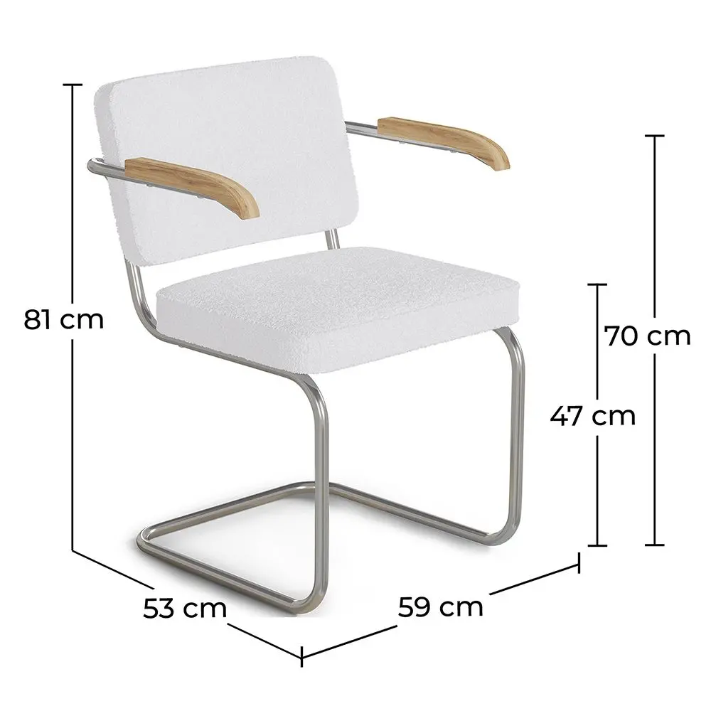 La sedia da pranzo Nui, con il suo design scandivano e le connotazioni vintage, è perfetta completare l'arredamento del tuo soggiorno, del salotto o della sala da pranzo con stile ed eleganza. È una combinazione eccellente di linee semplici e design accogliente, grazie all'imbottitura e al rivestimento bouclé; insieme vi offrono un posto comodo e rilassante su cui riposare. Il telaio è realizzato in metallo cromato, che le dona un look moderno. Si adatta perfettamente alla stanza che desideri e, se hai un luogo aperto al pubblico, ti farà fare una gran figura con ospiti, clienti o avventori.