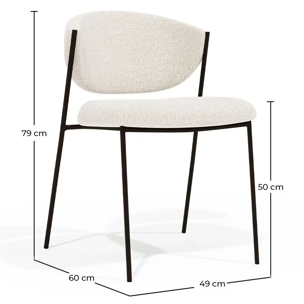 La sedia da pranzo Seda rivestita con tessuto bouclé e una struttura metallica è un elemento elegante e versatile che unisce funzionalità e stile. Il suo design sofisticato e contemporaneo la rende una scelta perfetta per hotel, ristoranti e anche per un uso residenziale nelle case. La tappezzeria in tessuto bouclé conferisce alla sedia un aspetto morbido e accogliente, aggiungendo texture e dimensione allo spazio. Il bouclé è un tessuto resistente e durevole, garantendo una lunga durata per la nostra sedia di design, anche in ambienti ad alto traffico come gli esercizi commerciali. Inoltre, la struttura metallica offre una base solida e stabile, assicurando la durabilità e la resistenza della sedia.