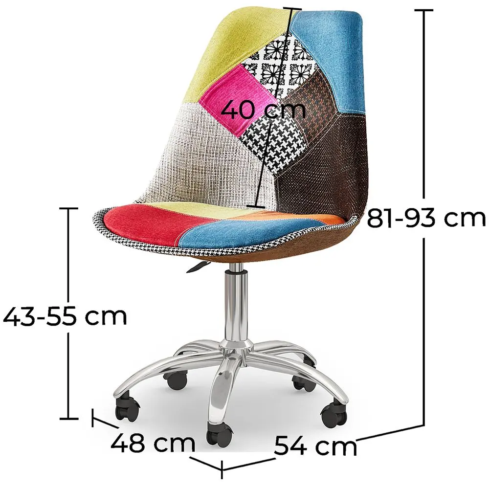 La nostra sedia da studio con rotelle è una sedia elegante e contemporanea, molto robusta e di qualità superiore. È una sedia da ufficio regolabile in altezza, rivestita in patchwork, ideale per la casa o l'ufficio.