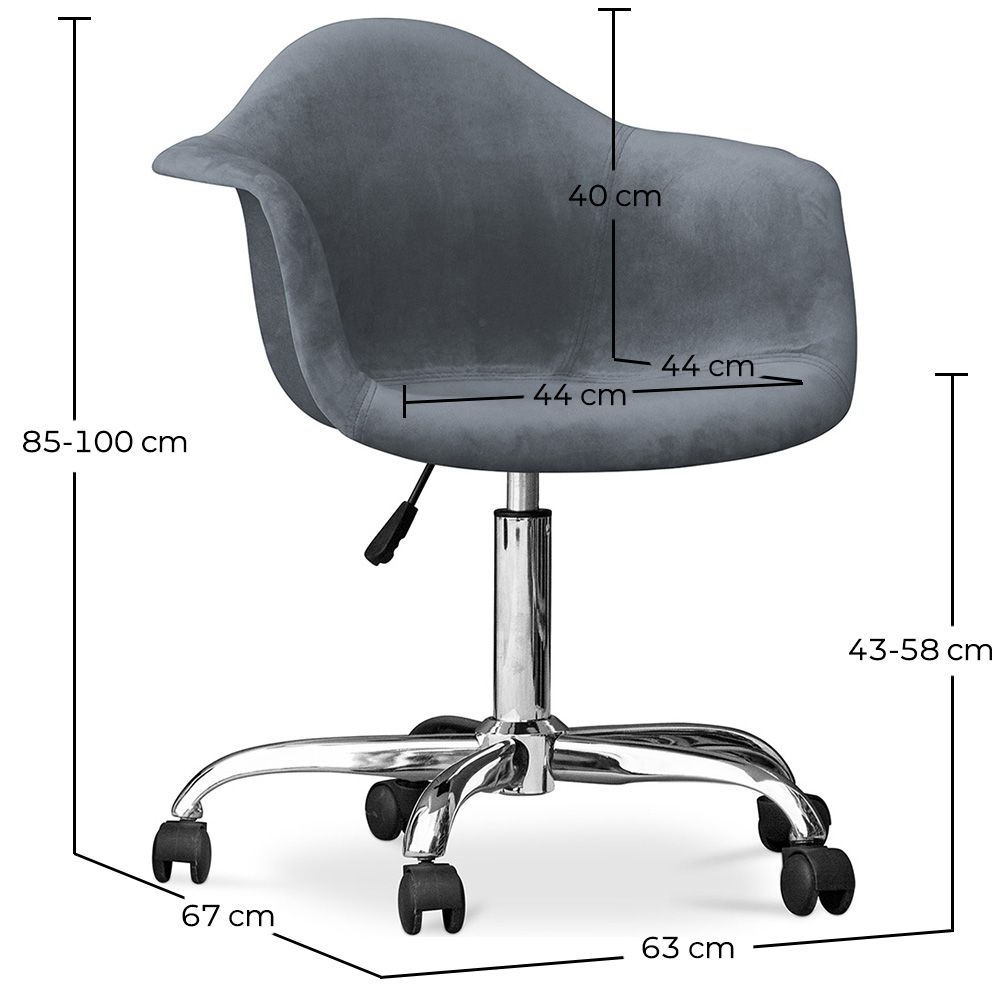 Graziosa e comodissima sedia da ufficio ergonomica e imbottita, con rivestimento fatto in velluto di altissima qualità. Non è solo un bel complemento d'arredo per lo studio o l'ufficio, ma è anche funzionale. Vi consente di ruotare e di spostarvi senza alzarvi.