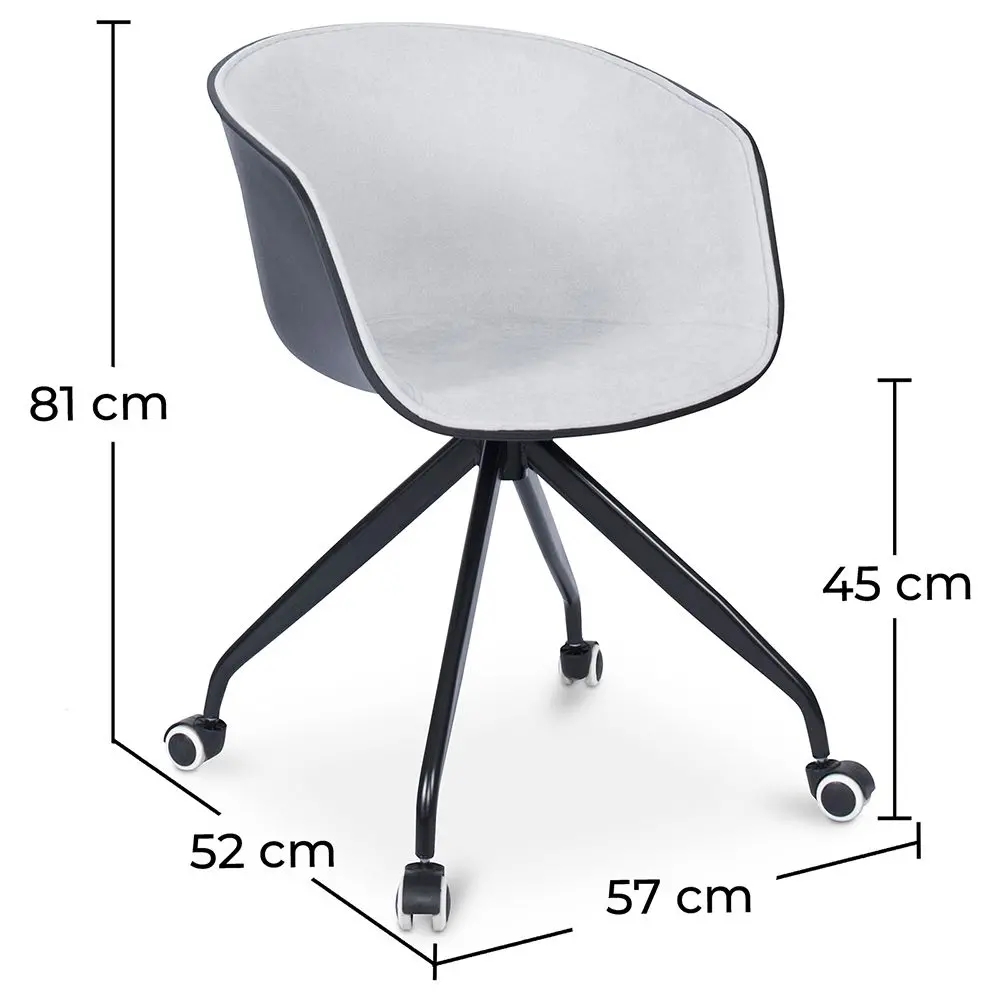 Goditi la possibilità di spostarti comodamente con questa sedia da ufficio con rotelle. Lo schienale tondo di grandi dimensioni è perfetto per lavoratori di tutti i tipi. Designer, ingegneri, impiegati in ambito tech che spesso utilizzano vari piani di appoggio e dispositivi. Apprezzeranno molto la facilità di movimento che questa sedia da ufficio fornisce. Il cuscino in tessuto e le gambe verniciate a polvere la rendono anche facile da pulire. Il design della sedia risalta sia in un ufficio in casa che commerciale. Le misure della sedia includono una profondità di 52 cm, ampiezza di 57.5 cm e altezza di 81 cm, mentre la seduta è a 45 cm di altezza. È disponibile in vari colori.