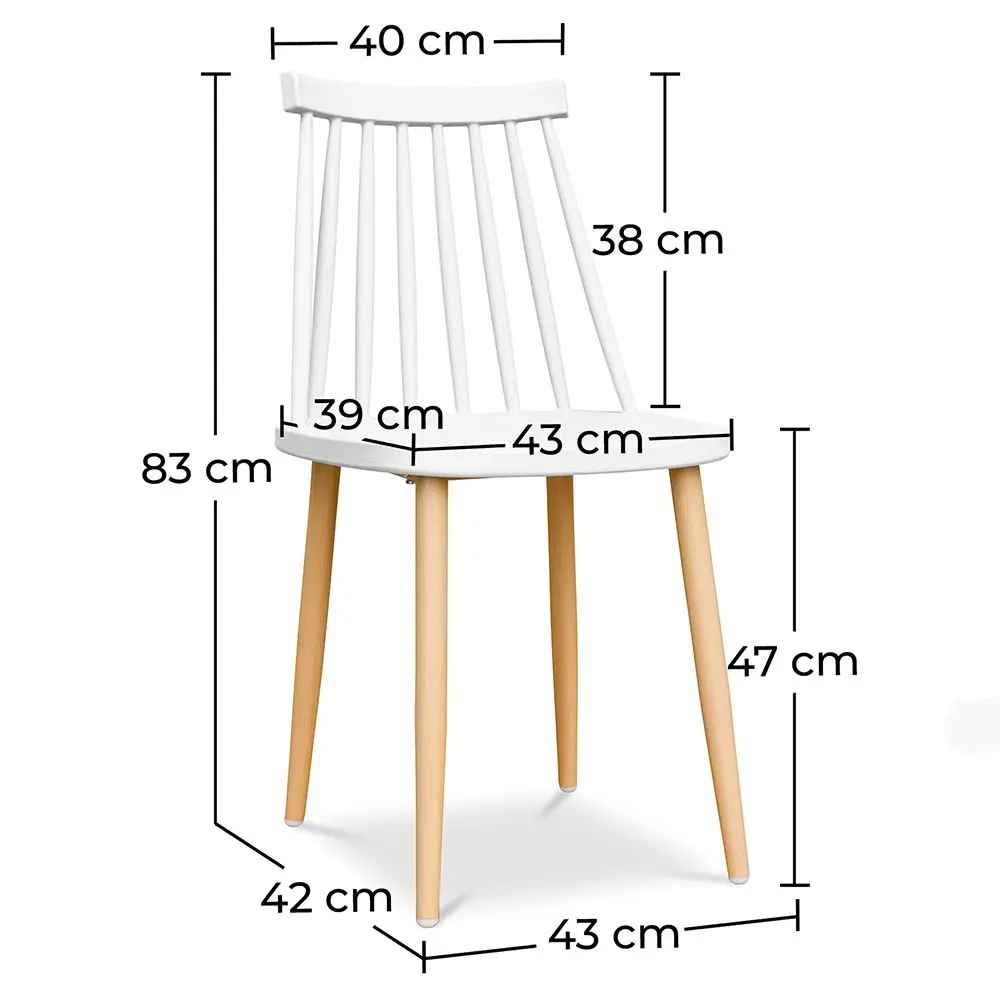 Questa sedia da pranzo si ispira allo stile nordico e darà il tocco finale alla tua sala da pranzo con grande semplicità. Una sedia in PPa con lo schienale fatto di barre e con gambe di metallo che imitano il legno. Questa bella sedia è così semplice e moderna che si adatterà a tutti i tipi di arredo di interni. Combina la sedia Jaley con altre sedie metalliche e rivestite per dare un tocco trendy alla tua sala da pranzo.