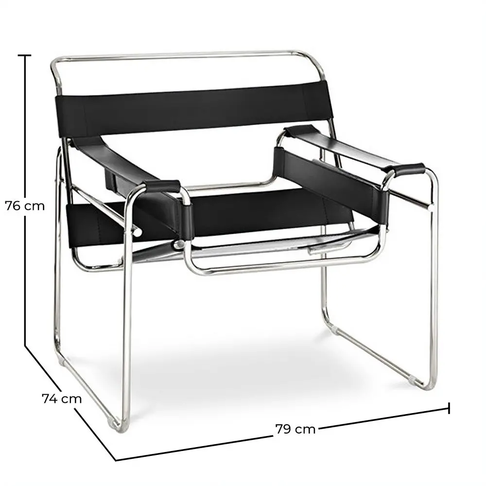 La Sedia Vasyl è un autentico gioco di strutture tra tubi di acciai. Questa sedia ha linee minimali ma non le serve altro: linee per il telaio e il rivestimento in pelle per sostenere il corpo. Questo modello è in Pelle Premium. La seduta ha una leggera pendenza all'indietro per un grande comfort. Questa sedia non mancherà di sorprendere i tuoi ospiti con il suo stile minimalista. È adatta ad ogni stanza di casa: salotto, cucina, sala da pranzo o ufficio. Inoltre, oltre ad essere comodissima, occupa anche poco spazio e darà valore al resto dell'arredamento col suo tocco contemporaneo