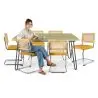 Cercate una composizione tavolo da pranzo con 6 sedie che assicuri comfort ai vostri ospiti o clienti del bar o dell'hotel e che arredi lo spazio con eleganza e stile? Il set Wanda è la soluzione giusta per voi. Il tavolo, in stile industriale, con gambe a forcina, è ampio e comodo. Le sedie, invece, sono in mesh, realizzate in rattan naturale. La morbida seduta in velluto dona all'insieme un aspetto confortevole che non potrete far mancare al vostro ristorante, al locale o in hotel.
