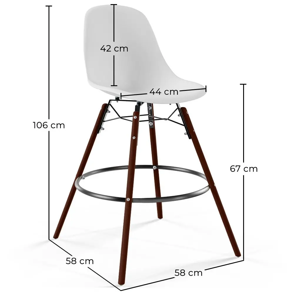 Gli prestigiosi sgabelli Lumi con questo design si trasformano in comodi sgabelli da bar. La loro seduta è realizzata in polipropilene e le gambe sono in legno e acciaio, rendendo questo sgabello da bar stabile e durevole.