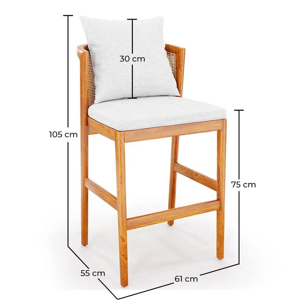 Con il nostro sgabello alto per esterni, godere del plein air non è mai stato così elegante e confortevole. Realizzato in legno di teak di prima qualità con schienale in rattan e cuscini rivestiti in polietilene resistente all'acqua e agli agenti ambientali, questo sgabello è perfetto per bar, ristoranti e hotel. Il suo design robusto e sofisticato garantisce durata e stile, mentre il suo comfort ineguagliabile ti permette di rilassarti e goderti la natura in totale comodità. Aggiungi un tocco di eleganza al tuo spazio esterno con questo sgabello alto di qualità superiore.