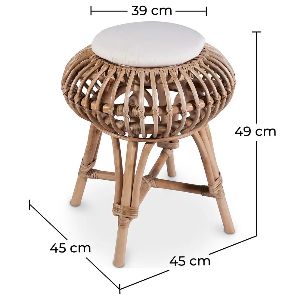 Siamo certi che amerai questo sgabello basso. Primo, perché è comodo e resistente grazie alla sua struttura in legno di rattan e alla sua seduta imbottita. Secondo, perché ha un design naturale che creerà un'atmosfera piacevole e accogliente ovunque lo metterai. E terzo, perché puoi sia usarlo come sgabello da giardino, sia metterlo in salotto, in studio o in camera da letto. Provare per credere!