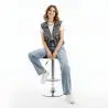 Oltre al suo design classico, questo sgabello da bar girevole da ufficio è davvero utile con il suo meccanismo interno a gas grazie cui puoi regolarne l’altezza da 65 a 85 centimetri. Il sedile fatto di PVC ruota ed è molto resistente e facile da pulire.