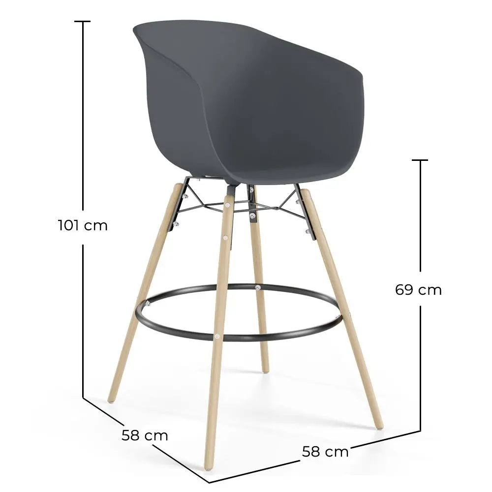 Con un marcato stile scandinavo, il nostro sgabello da bar Miscel è comodo e molto stabile. La seduta è realizzata in polipropilene e le gambe sono in legno massello di faggio, con un reticolo di bacchette metalliche nere che conferiscono maggiore stabilità. Questo sgabello da bar di design è ideale per il bancone di un bar, hotel, ristorante o caffetteria, poiché la sua ottima qualità gli consente di rimanere come nuovo nel tempo.