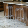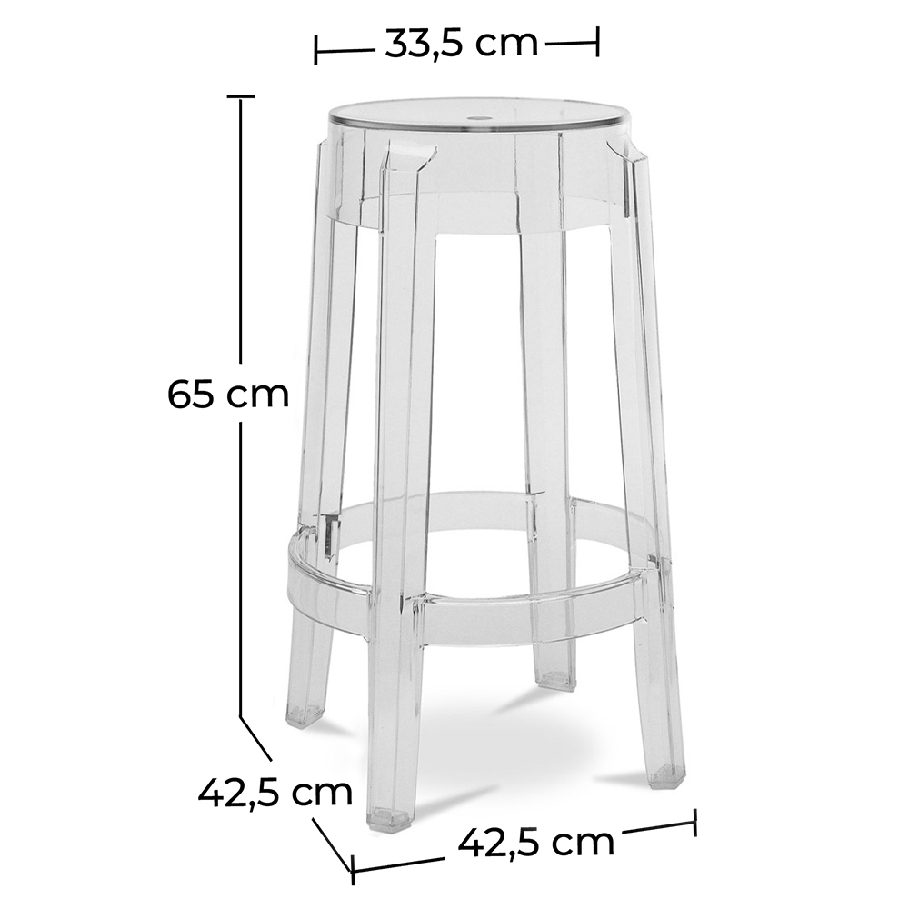La serie di arredi mette in mostra una combinazione di linee classiche e un design fortemente contemporaneo. L'uso di PPa trasparente soffia nuova vita nel mobilio tradizionale. Questo arredo contemporaneo troverà facilmente posto in casa tua. Questo sgabello di design va bene in salotto, vicino ad un mobile bar o sul patio, per un tocco originale. E puoi aggiungere altre pennellate trasparenti affiancando a questo sgabello contemporaneo altri pezzi della collezione per creare un'atmosfera misteriosa. A parte l'originalità e il design, questo arredo trasparente si pulisce facilmente con uno straccio umido.