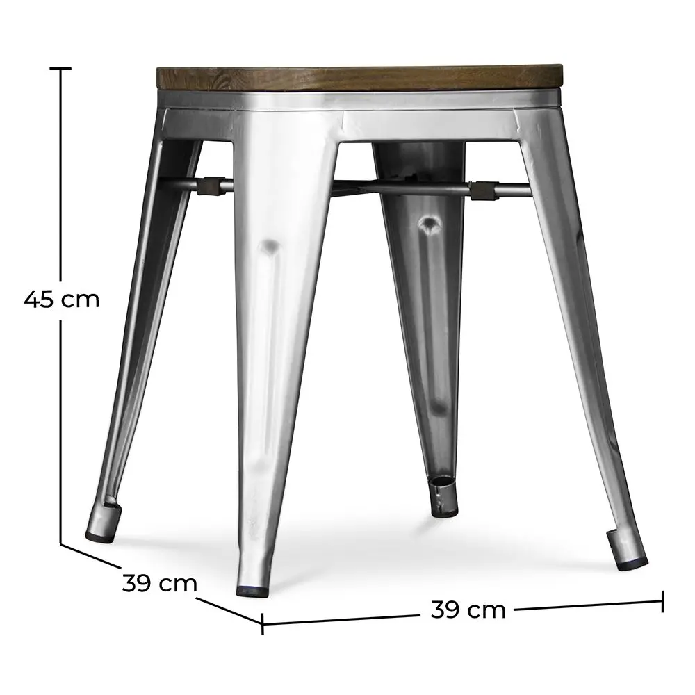 Rinnova i tuoi spazi con lo sgabello Metalix che misura 45 cm, combinando la resistenza dell'acciaio con il calore di una seduta in legno naturale. Perfetto per banconi bassi, isole cucina o angoli che necessitano di un tocco funzionale con carattere industriale.