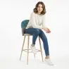 Come tutti gli arredi scandinavi, questo sgabello da bar per interni dona stile e calore ad ogni stanza. I colori morbidi e la comodità del rivestimento in patchwork si uniscono alla tinta legnosa delle sue solide gambe in metallo per creare un'atmosfera rilassata e familiare, mentre la seduta in legno contribuisce a renderlo comodo e stabile. La base alta 76cm rende l'Bennett Amy adatto sia ad essere messo davanti al bancone in un bar, che ad arredare una sala da pranzo moderna.