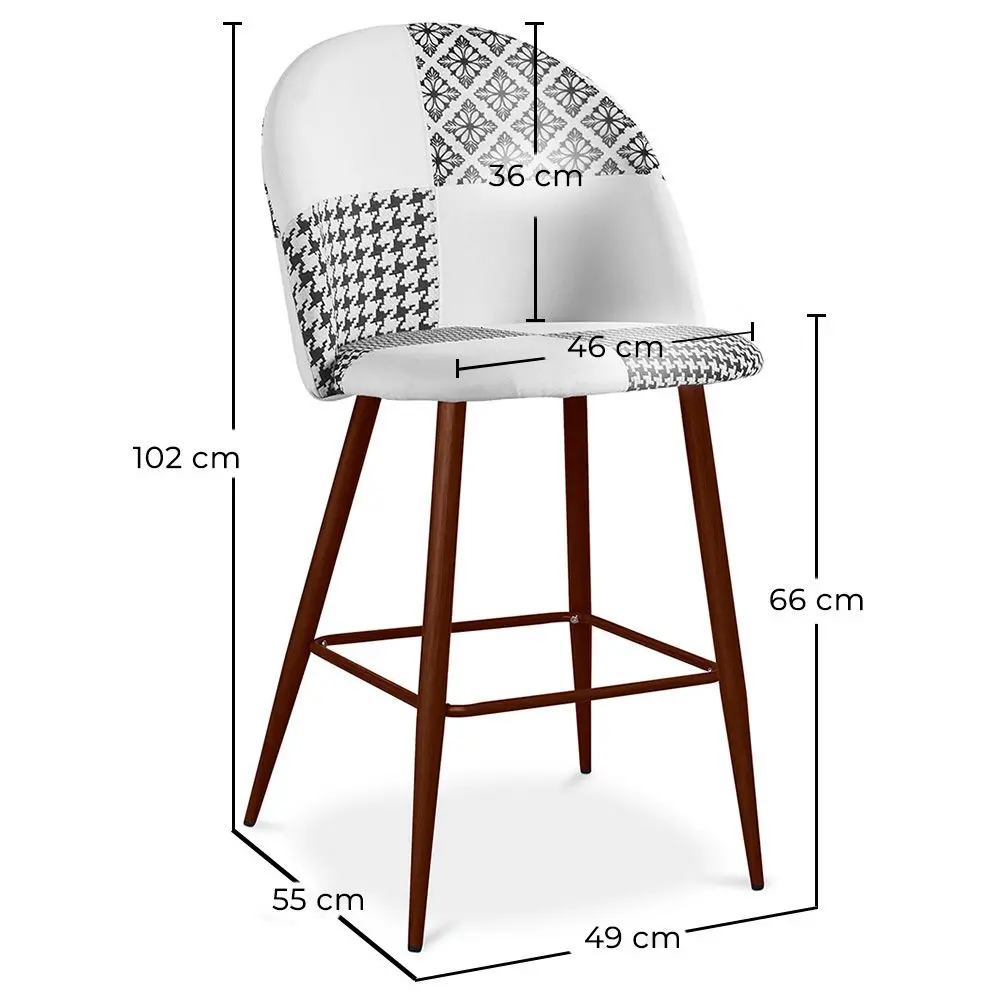 Il suo rivestimento in patchwork è ottenuto mischiando diverse stoffe e colori e può donare un’aria di convivialità a qualsiasi ambiente. Il colore scuro delle 4 gambe con poggiapiedi, poi, rende tutto più d’impatto. Una scelta perfetta per qualsiasi club o bar moderno, ma anche per la tua nuova sala da pranzo.