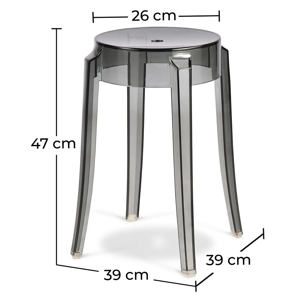 La serie di arredi mette in mostra una combinazione di linee classiche e un design fortemente contemporaneo. L'uso di PPa trasparente soffia nuova vita nel mobilio tradizionale. Questo arredo contemporaneo troverà facilmente posto in casa tua. Questo sgabello di design va bene in salotto, vicino ad un mobile bar o sul patio, per un tocco originale. E puoi aggiungere altre pennellate trasparenti affiancando a questo sgabello contemporaneo altri pezzi della collezione per creare un'atmosfera misteriosa. A parte l'originalità e il design, questo arredo trasparente si pulisce facilmente con uno straccio umido.