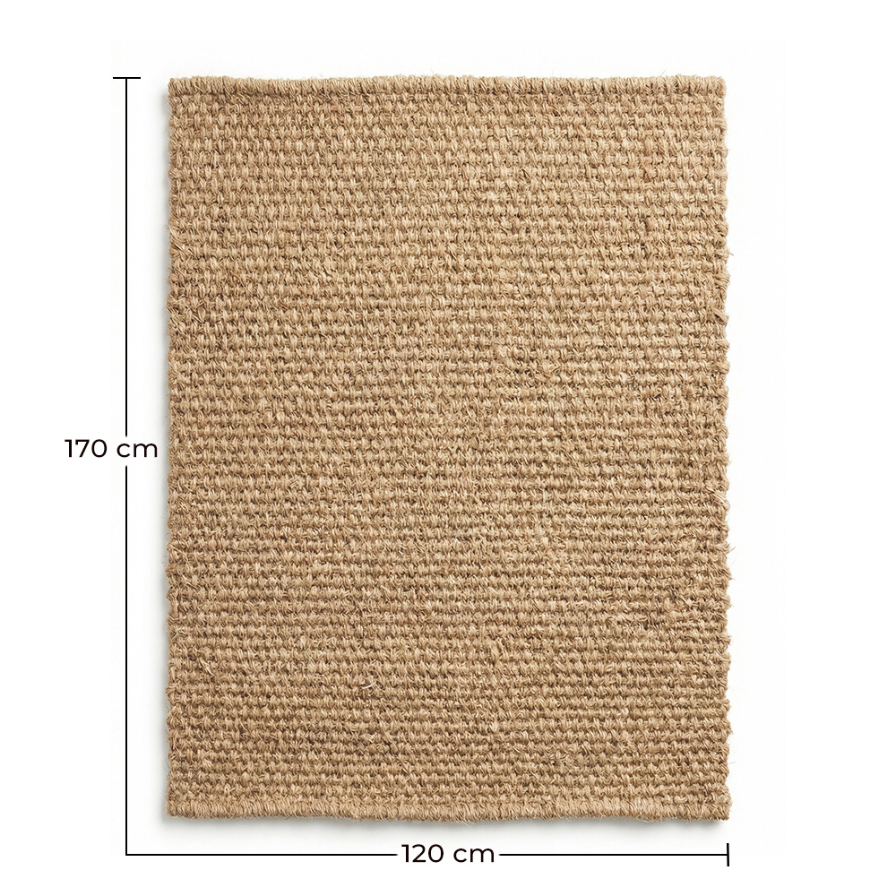 Grazie alle sue dimensioni di 170 x 120 cm, è ideale come tappeto da soggiorno, tappeto per terrazza coperta, tappeto da veranda, tappeto da ingresso o anche come tappeto decorativo per sala da pranzo. La sua finitura in tono naturale si fonde facilmente con stili nordici, rustici, mediterranei o boho.