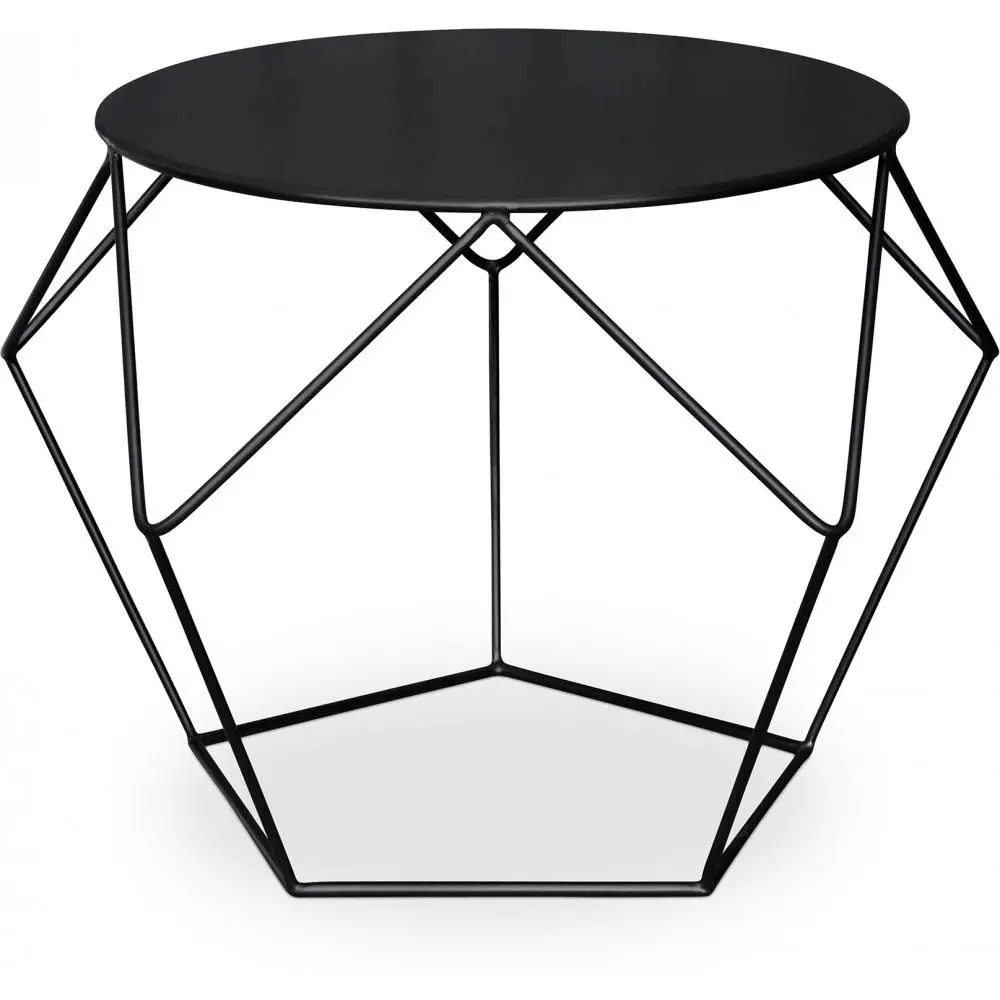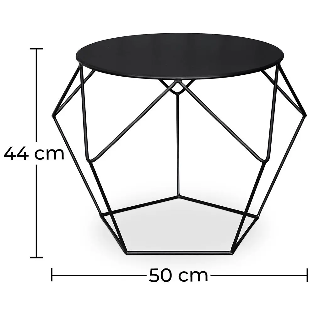 Questo tavolino è fatto completamente di metallo ed è alto 44 centimetri. È stato costruito con segmenti di acciaio super resistente e ha un ripiano tondo con una superficie di 50 cm di diametro.