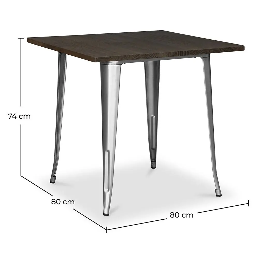 Perfetto per i piccoli spazi, questo tavolo Stile Bistrot Metalix che ha un ripiano quadrato di 80 x 80 cm. Ha una struttura in ferro dipinto con vernice in polvere e un ripiano di legno massiccio. Questo tavolo da pranzo quadrato e di stile industriale è perfetto per 4 ospiti. Abbinato alle sedie Stile Bistrot Metalix darà al tuo salotto / sala da pranzo un look retrò davvero alla moda.