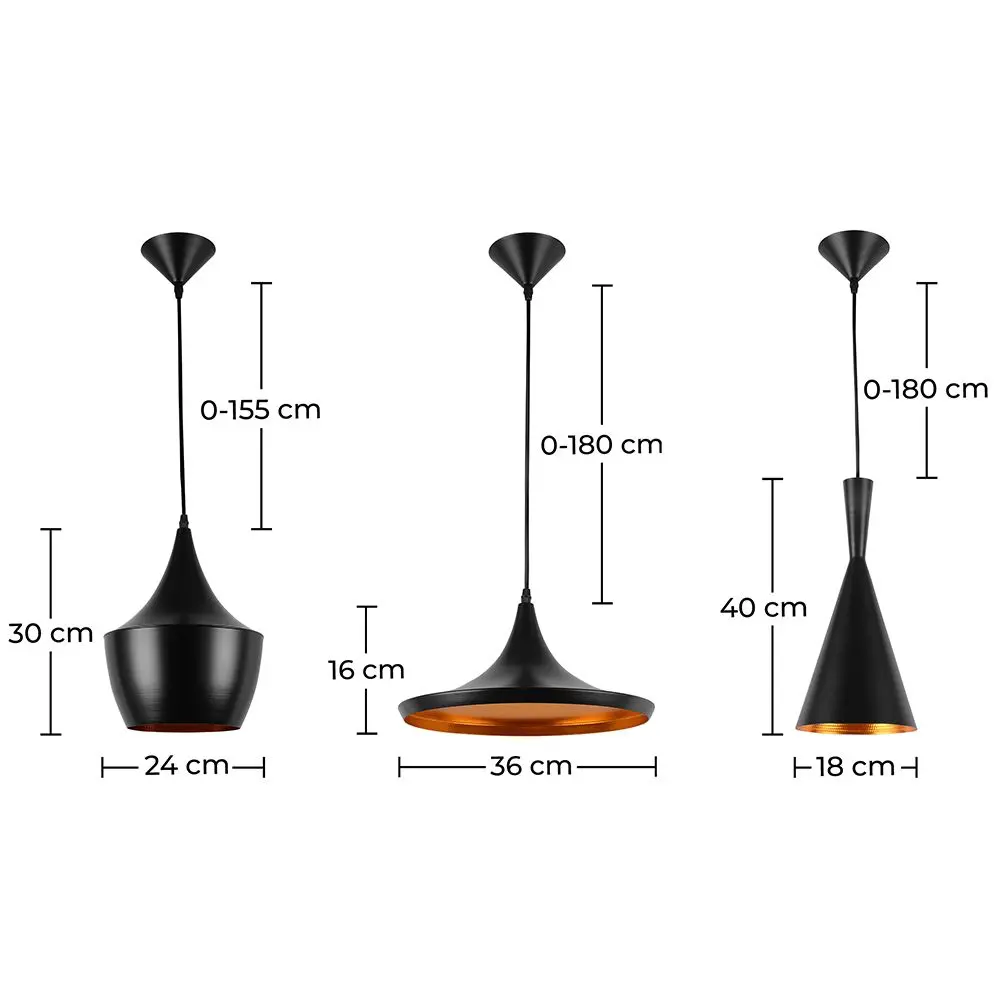 Questo pack è composto da 3 lampadari ispirati al design Beat Shade e sono ideali per illuminare il bancone della tua cucina o un tavolo da pranzo. Grazie alla lunghezza dei cavi puoi regolare ogni lampada a un'altezza diversa e metterle tutte e tre alla stessa altezza. Sono tre lampade indipendenti che insieme formano una bellissima combinazione che darà eleganza e design alla tua decorazione di interni.